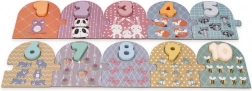 Elk dierenkaartje hoort bij één cijfer. Kinderen koppelen cijfer en hoeveelheid visueel én tactiel, wat de eerste stappen in het tellen vereenvoudigt.