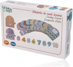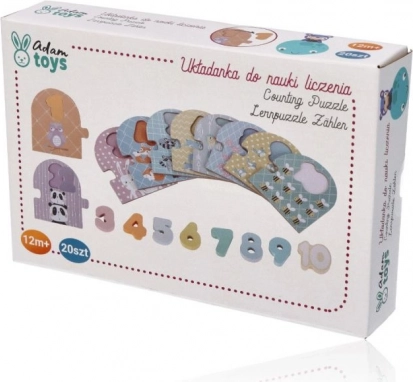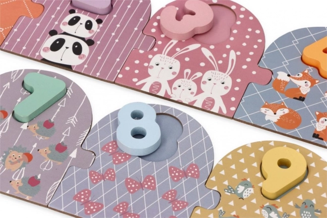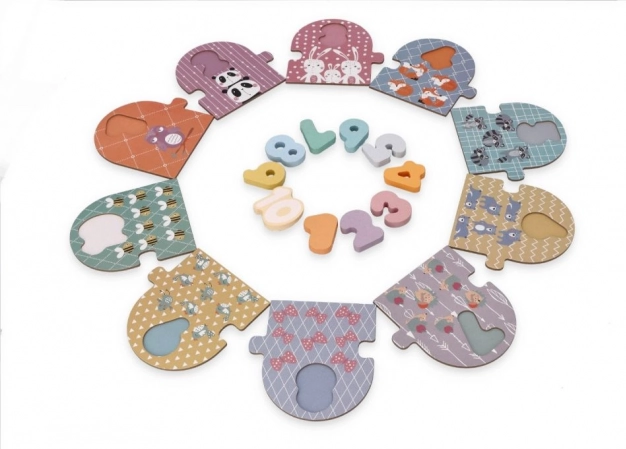 Deze kwalitatieve houten legpuzzel combineert plezier en leren. Elk cijfer 1–10 heeft een eigen kaartje met schattige dieren in het bijbehorende aantal, zodat het kind eenvoudig het verband tussen cijfer en hoeveelheid begrijpt. De verhoogde, gekleurde cijfers liggen prettig in kleine kinderhandjes en ondersteunen de ontwikkeling van de fijne motoriek en het visuele waarnemen.
