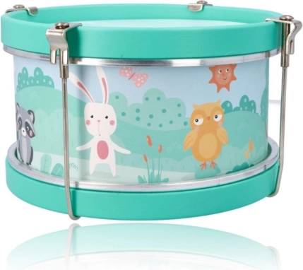 De kindertrommel Bosdieren tovert een glimlach op het gezicht van elk kind dat graag de wereld van muziek ontdekt. Kleurrijke illustraties van een vos, egel en andere dieren nodigen uit tot spelen, terwijl de lichte constructie en comfortabele riem het dragen eenvoudig maken. Trommelen stimuleert het natuurlijke ritmegevoel, de concentratie en de coördinatie.