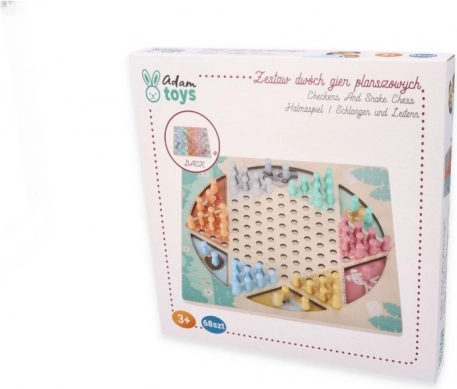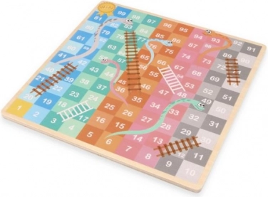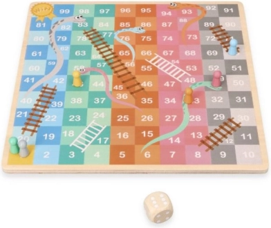 Dit houten bordspel biedt twee klassiekers in één. Aan de ene kant vind je het strategische HALAMA (Chinese dammen/Chinees dammen), waarin het doel is al je stenen naar de overkant te verplaatsen. Aan de andere kant wacht het vlotte spel Slangen en Ladders, waarin je met de dobbelsteen naar de finish schuift, ladders beklimt en over slangen terugglijdt.