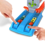 De mechanische launcher met twee kanalen lanceert auto’s tegelijkertijd – ideaal voor head‑to‑head duels en reactietests, zónder batterijen.