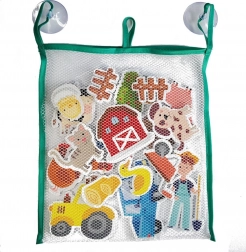 Verander het dagelijkse badmoment in een vrolijk boerderij-avontuur! Kleurrijke schuimrubberen stickers hechten na bevochtigen eenvoudig aan het bad, de tegels of het glas en blijven dankzij het lichte materiaal ook drijven op het water. Inclusief een handig net met zuignappen voor gemakkelijk drogen en opbergen. Ideaal voor kinderen vanaf 3 jaar, met focus op veilig, creatief en educatief spel in het water.