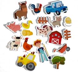 - 18 schuimrubberen stickers (boerderij: dieren, voertuigen, gebouwen en accessoires)