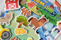 Geef kinderen een bad vol fantasie. De set schuimrubberen stickers met boerderijthema bevat 18 onderdelen – schattige dieren, een tractor, een schuur en meer elementen die kinderen naar wens combineren om hun eigen verhalen te maken. Een druppel water is genoeg en de stickers blijven goed zitten op gladde oppervlakken, maar zijn ook makkelijk te verwijderen en opnieuw te gebruiken.