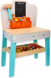 De kinder houten werkbank met bord is een ideaal cadeau voor kleine klussers. De tafel bevat aangepast houten gereedschap, zoals een hamertje, zaag en sleutel, waarmee kinderen verschillende constructie- en reparatieactiviteiten kunnen nabootsen. Met het JOB LIST-bord kunnen kinderen hun projecten plannen en werkorganisatie leren. Praktische gereedschapsvakken en planken bieden voldoende opbergruimte.