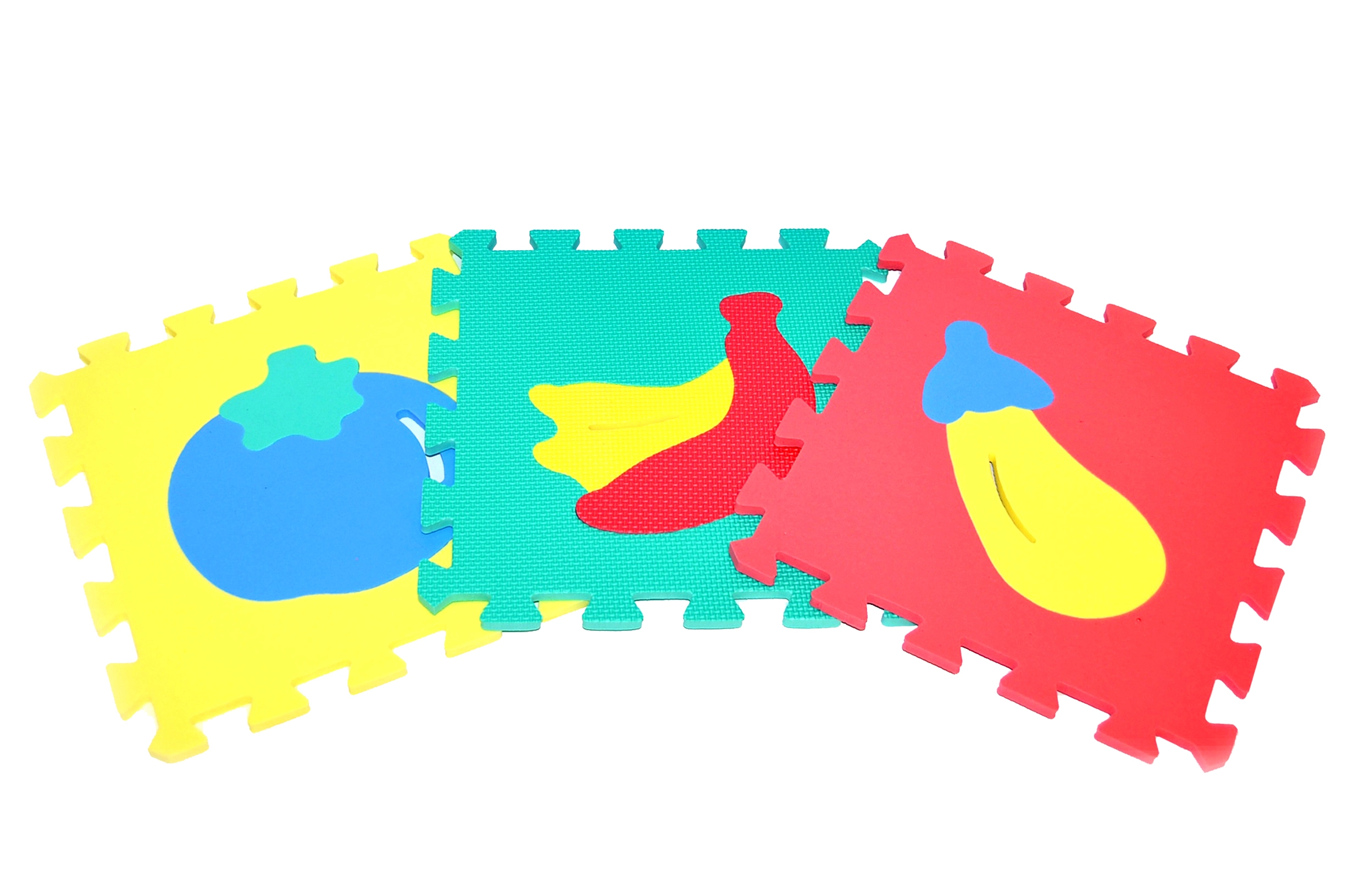 Stimuleer de fantasie en het logisch denken van kinderen met de zachte foam puzzels FRUIT. Van de losse delen maak je gemakkelijk een comfortabel speelkleed dat de kou van de vloer isoleert en de veiligheid tijdens het spelen vergroot dankzij de prettige demping.
