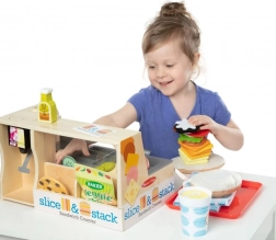 Praktische vakjes houden alle houten en vilten ingrediënten overzichtelijk op hun plek – kinderen kiezen makkelijk wat er op de sandwich hoort.