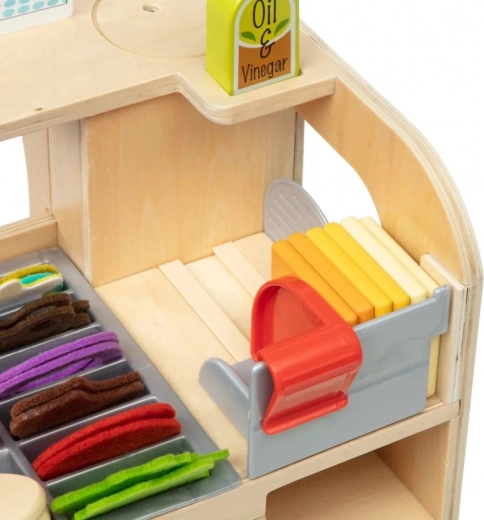 Ontdek de speelse houten sandwichbalie voor kinderen vanaf 3 jaar, die creatief spel, fijne motoriek en leren over voedselbereiding ondersteunt. Dankzij overzichtelijke vakjes, houten en vilten ing... Meer tonen