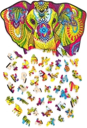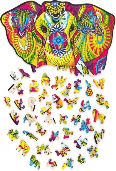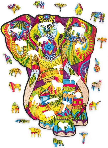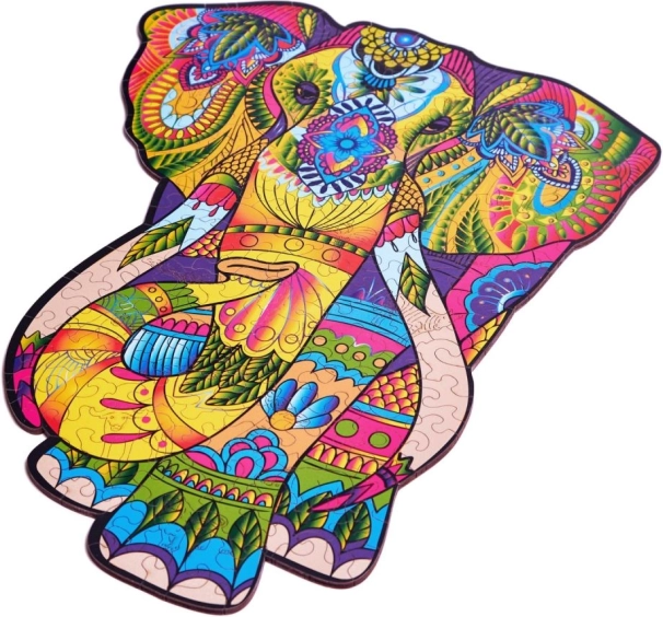 Deze gedetailleerd uitgewerkte olifantenpuzzel van hoogwaardig hout betovert met verfijnde patronen en diepe kleuren. Ideaal voor tieners en volwassenen die op zoek zijn naar stijlvol vermaak én een designaccent voor het interieur.