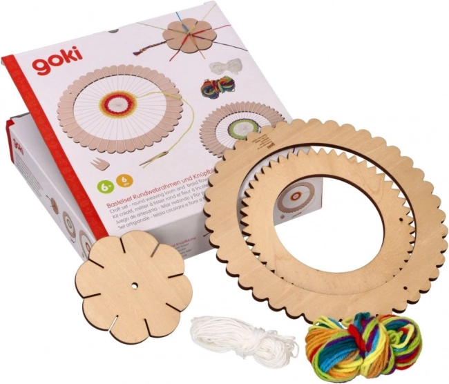 Deze hoogwaardige houten breiset van Goki biedt kinderen en volwassenen een rustgevende ervaring met handwerk. Dankzij de twee ronde ramen met diameters van 22, 16 en 10 cm en de bloemenwever maak je gemakkelijk originele mandala’s, onderzetters, decoraties of kleine textiele accessoires. De set ondersteunt concentratie, oog-handcoördinatie en esthetisch inzicht.