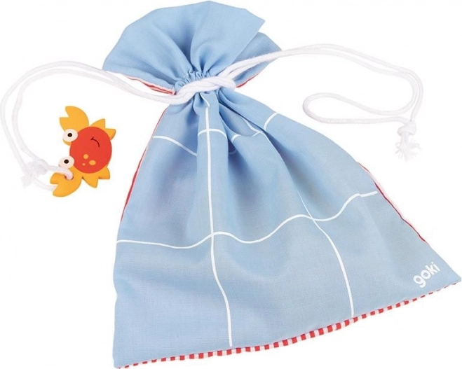 Ontdek de charme van het klassieke spel met een frisse twist dankzij Goki Houten Boter‑Kaas‑en‑Eieren! Dit spel is ontworpen om makkelijk mee te nemen dankzij het katoenen zakje met een krab, dat tegelijk als speelveld dient. Het spel bevat: