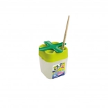 De robuuste kunststof behuizing en het goed afsluitende deksel zorgen voor een lange levensduur en veilig gebruik. De container is eenvoudig te reinigen en geschikt voor waterverf, aquarel of tempera.