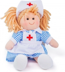 Maak kennis met de lieve verpleegster Nancy, de ideale metgezel om te troosten en voor elke dag spelen. Het zachte textiel met aangename materialen nodigt uit tot knuffelen, terwijl het realistische uniform met rood kruis kinderen inspireert om te zorgen en te helpen.