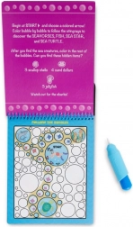 Vul de meegeleverde waterstift en zie hoe op de pagina’s kleuren, verborgen afbeeldingen en paadjes verschijnen. Na het drogen kun je opnieuw kleuren.