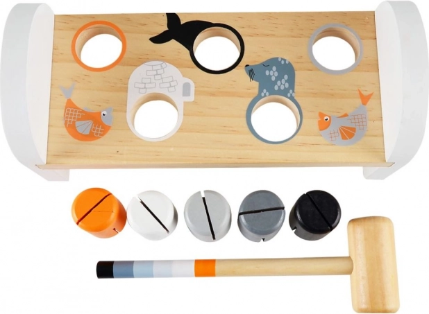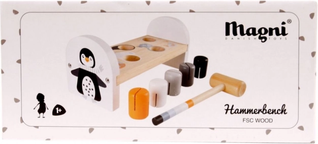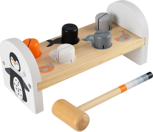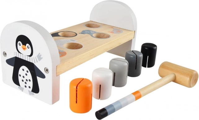 Deze stevige houten hamertafel met een schattig pinguïnmotief biedt kinderen veel plezier en leermomenten. Met behulp van het hamertje slaan kinderen stap voor stap de gekleurde pinnen in, waarmee ze op een natuurlijke manier hun motorische vaardigheden, geduld en logisch denken ontwikkelen. De compacte afmetingen zijn ideaal voor kleine handjes en voor spelen thuis of onderweg.