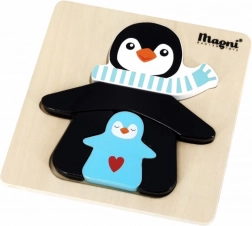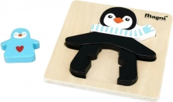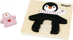 Schattige houten puzzel met een pinguïn en zijn jong, perfect voor de allerkleinsten vanaf 18 maanden. Ondersteunt fijne motoriek, logisch denken en coördinatievaardigheden. Hoogwaardige houten afwerking en een prettig formaat van 14,5 × 14,5 cm, ideaal voor kleine handjes.