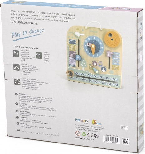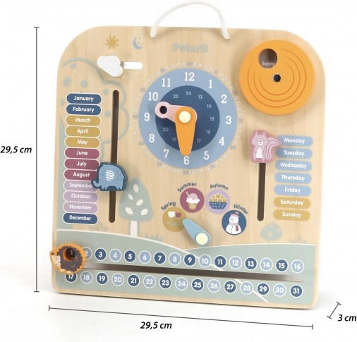 Houten kalender en klok PolarB is een uniek educatief hulpmiddel dat plezier en kennis brengt. Het biedt diverse educatieve elementen: