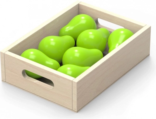 De set bevat 10 verschillende soorten fruit en groenten, wat variatie biedt voor kinderspellen.
