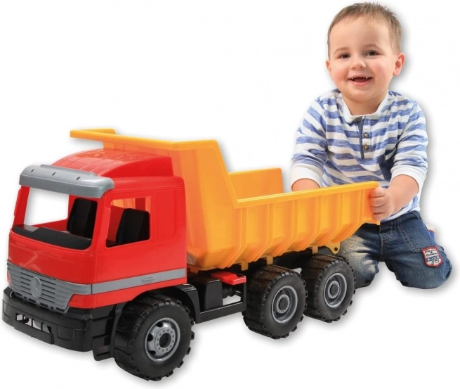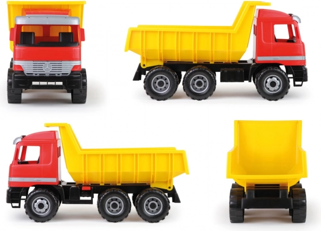 Deze Mercedes-kiepwagen biedt kinderen de mogelijkheid om realistisch te spelen dankzij het gedetailleerde ontwerp en praktische functies. Hij is gemaakt van hoogwaardig plastic, wat duurzaamheid en veiligheid garandeert. De bak is voorzien van een borging tegen ongewenst kiepen, wat de veiligheid tijdens het spelen verhoogt.