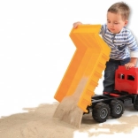 De kiepwagen is gemaakt van duurzaam plastic, waardoor hij geschikt is voor zowel buiten- als binnengebruik.