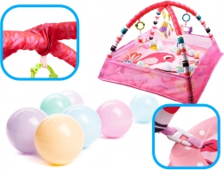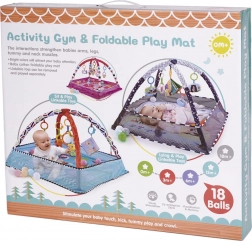 De mat is stevig en duurzaam, ontworpen voor langdurig gebruik. De hangende speeltjes en pastelgekleurde balletjes dragen bij aan de zintuiglijke ontwikkeling.