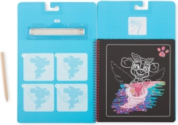 De krasset met Skye uit Paw Patrol biedt kinderen urenlang fantasierijk plezier. Met de houten stylus krassen kinderen de verborgen kleuren tevoorschijn op de zwarte pagina’s en maken ze eigen afbeeldingen, of gebruiken ze de meegeleverde transparante sjablonen om vormen eenvoudig over te trekken. De hele set zit in een stevige, spiraalgebonden map met een houder voor de stylus – alles netjes bij elkaar.