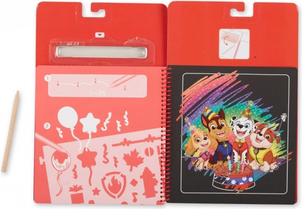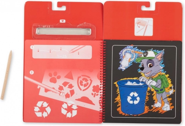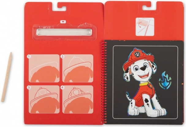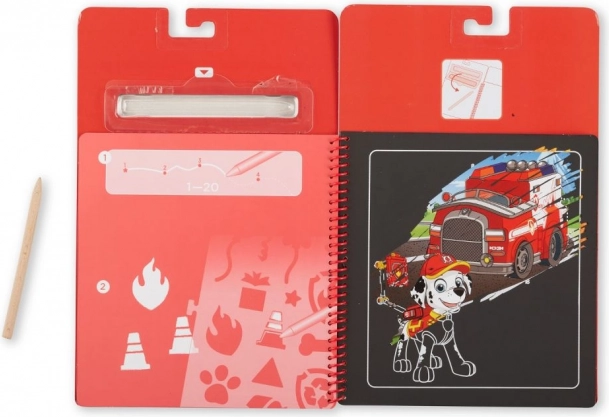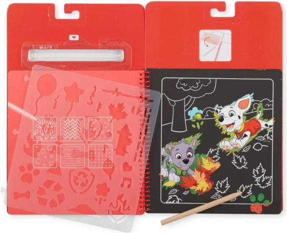 Het spiraalgebonden krasblok met PAW PATROL – Marshall combineert de magie van tevoorschijn komende afbeeldingen met praktische sjablonen. Kras zachtjes met de houten stylus en onder de zwarte laag verschijnen heldere kleuren en gedetailleerde illustraties van geliefde helden. Geweldig voor eerste tekenoefeningen, geduld en concentratie.