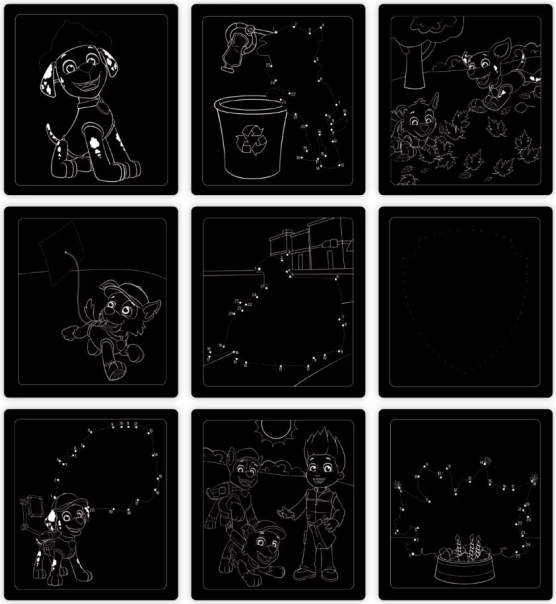 Onder de zwarte laag zitten kleurrijke scènes met Marshall verstopt. Kinderen beleven een direct “wow”-effect bij elke kras.