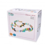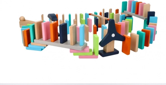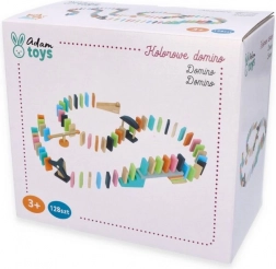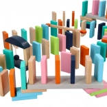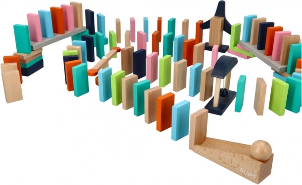 Ontdek het leuke en educatieve kleurrijke houten domino met 128 onderdelen, dat kinderen stimuleert om creatieve banen en kettingreacties te bouwen. De set met draaimolen, windmolentje, poort met knikker, trapjes en bruggen ontwikkelt de fijne motoriek, het logisch denken en het ruimtelijk inzicht. Geschikt vanaf 3 jaar, ideaal voor familie- en groepsspel.
