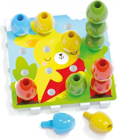 Mozaïek Jumbo Peggy is het ideale speelgoed voor de allerkleinsten. Dankzij de grote, afgeronde onderdelen zijn ze gemakkelijk vast te pakken en te plaatsen. Kinderen kunnen geweldige driedimensionale composities maken door de pinnen op elkaar te stapelen.