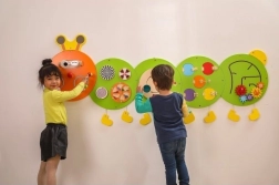 Ontdek de magie van spelen met deze kleurige muuractiviteit Rups voor kinderen. Naast het plezier bevordert het ook de hand-oogcoördinatie en fijne motoriek.