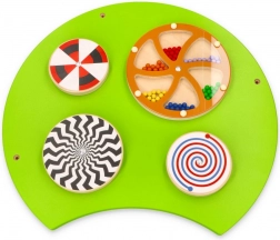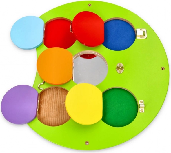 Ontdek een wereld vol kleuren met deze muurset in de vorm van een rups. Het bevat vijf interactieve delen waarmee kinderen spelenderwijs verschillende vaardigheden kunnen ontwikkelen:
