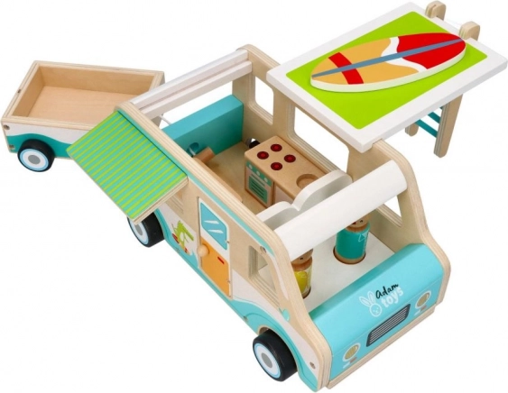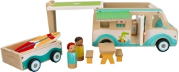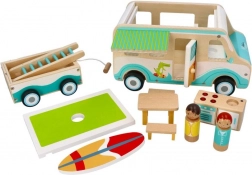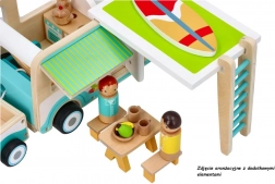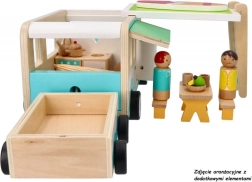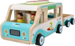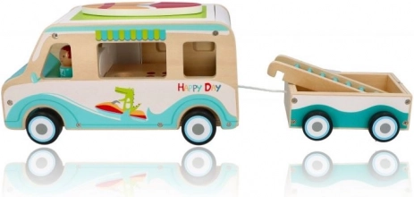 Geniet van leuk speelplezier met de houten caravan die de sfeer van echt reizen tot leven brengt. Dankzij het ruime interieur en de aanhanger kun je extra speelgoed en accessoires meenemen op reis. Deze houten set stimuleert creativiteit en ondersteunt fantasierijk spel.