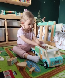 De aankoppelbare aanhanger en het ruime interieur van de caravan maken het mogelijk om extra speelgoed toe te voegen en bevorderen dynamisch en gevarieerd spel.