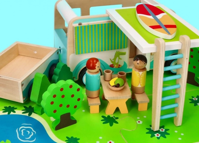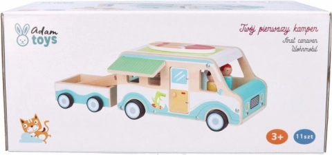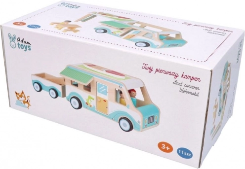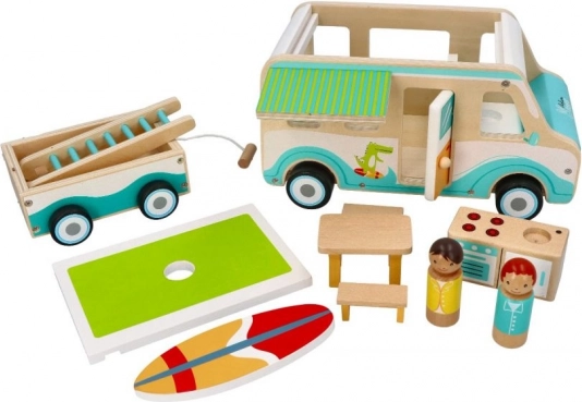 Ga op avontuur met de houten caravan, ideaal voor kinderen vanaf 3 jaar. Dit prachtig afgewerkte model bevat gedetailleerde elementen die zorgen voor leuk en fantasierijk spelen. Kinderen kunnen genieten van: