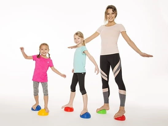 Met levendige kleuren en stimulerende oppervlakken maken deze halve cirkels van oefenen een leuke activiteit, wat kinderen motiveert om actief te bewegen.