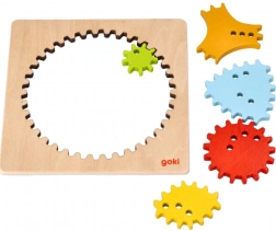 Het frame met een set van 5 verschillende tandwielvormen stimuleert de fijne motoriek, concentratie en grafomotorische ontwikkeling. De hoogwaardige houten afwerking en zorgvuldig vervaardigde onderdelen zijn veilig en prettig om aan te raken.