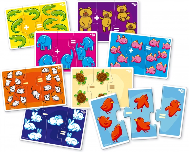 Met puzzeltrio's die uit afbeeldingen bestaan, leren kinderen gemakkelijk de basisconcepten van wiskunde in een speelse omgeving. Deze set is ideaal voor de ontwikkeling van logisch denken en cognitieve vaardigheden.