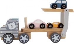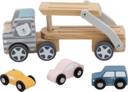 De houten takelwagen VIGA PolarB biedt kinderen plezier en leren in één. De set omvat een vrachtwagen met aanhanger en drie gekleurde autootjes die eenvoudig kunnen worden geladen met de kantelbare oprit. Duurzaam hout en zorgvuldige afwerking garanderen een lange levensduur, terwijl niet-giftige verven volgens EN71- en ASTM-normen veiligheid bij dagelijks spelen waarborgen.