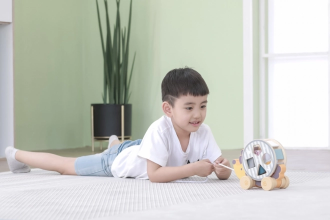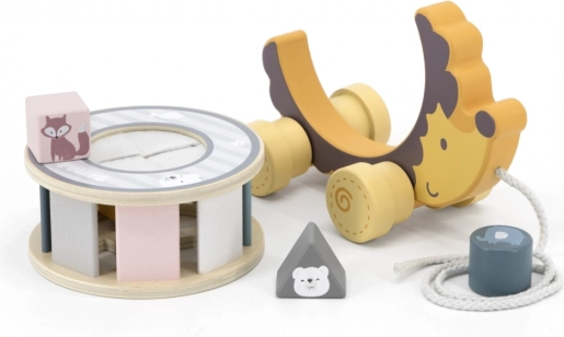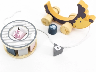 Houten egeltje op wieltjes met een vormensorteerder stimuleert de fijne motoriek, oog-handcoördinatie en het leren van vormen en kleuren. Dankzij het trektouw motiveert het kinderen om te bewegen en zelfstandig te lopen. Veilige afwerking, gladde randen en hoogwaardig materiaal zijn ideaal voor kinderen vanaf 2 jaar.