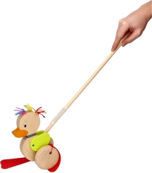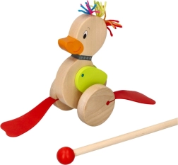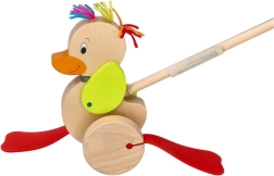 Ontdek de charme van een houten speelgoed dat de motorische en lichamelijke ontwikkeling van uw kind ondersteunt. De eend met kleurrijke details en meer gekleurde wieltjes beweegt over de vloer en stimuleert de eerste stapjes en de coördinatie. Gemaakt van natuurlijk hout, biedt het speelgoed veilige en duurzame speelpret voor kinderen vanaf 18 maanden.