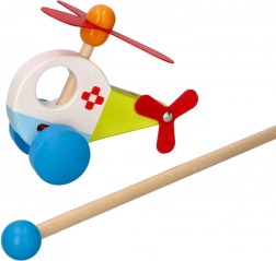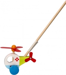 De houten helikopter met duwstok van Goki zorgt voor veel plezier voor kinderen die net leren lopen. Hij is gemaakt van massief hout, wat een lange levensduur en veiligheid tijdens het spelen garandeert. Dankzij het kleurrijke design en de bewegende delen, zoals de propeller en de wieltjes, spreekt hij elke kleine ontdekkingsreiziger aan.