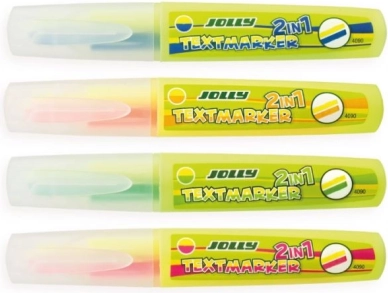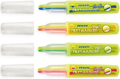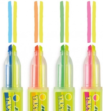 Kies uit een breed scala aan kleuren en geniet van een set van 4 tweekleurige tekstmarkers die je voor verschillende doeleinden kunt gebruiken. Elke marker is ontworpen om heldere en intense kleuren te leveren op alle soorten papier. Dankzij het compacte formaat en het lage gewicht neem je ze gemakkelijk overal mee naartoe.