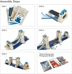 Ontdek Londen door een van zijn beroemdste symbolen te bouwen – de Tower Bridge. Deze 3D-puzzel uit de National Geographic-serie van CubicFun biedt een realistische uitwerking, nauwkeurige details en een prettige bouwervaring zonder lijm. Onderdelen van ca. 3 mm schuim met gelamineerde bedrukking zorgen voor stevigheid en een fraaie uitstraling van het eindmodel.