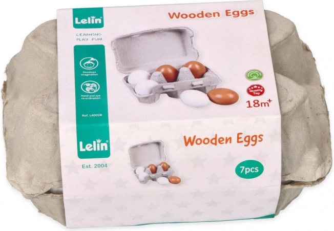 De eieren zijn gemaakt van hoogwaardig hout dat veilig is voor kinderlijk spel en voldoet aan CE-normen.