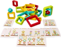 Bevat vormen in vier kleuren: rood, blauw, groen en geel. Bevordert bij kinderen het onderscheidingsvermogen van kleuren en ontwikkelt esthetisch gevoel.
