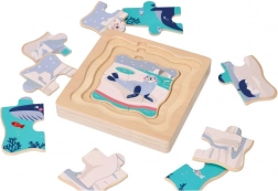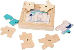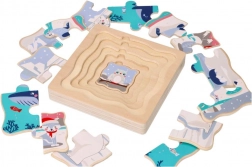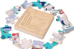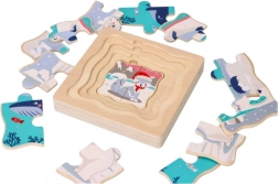 Deze houten gelaagde puzzel met een vleugje Arctica wordt geleverd met 15 kleurrijke puzzelstukjes en een hoogwaardige houten basis. Hij is ontworpen om de cognitieve ontwikkeling en coördinatievaardigheden van kinderen te verbeteren.