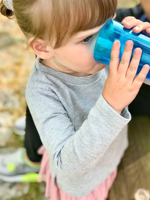 Kinderen leren natuurlijk en veilig uit een open beker drinken. De doorstroomcontrole helpt morsen te beperken bij de eerste pogingen.