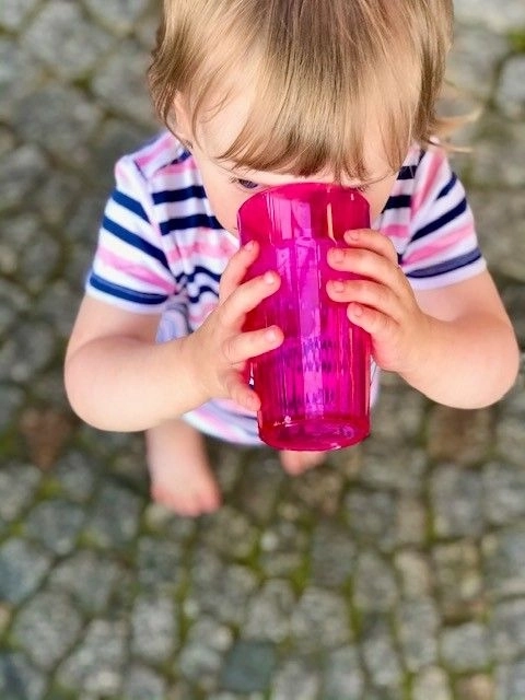 Reflo stimuleert de natuurlijke manier van drinken aan een open rand en helpt kinderen bij de overgang van fles naar gewone beker.