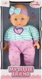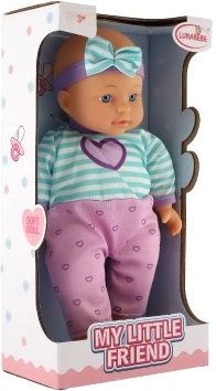 De pop My Little Friend is de ideale speelkameraad voor uw kind. Gekleed in een kleurrijke outfit met een mooie strik stimuleert deze pop de verbeelding en versterkt ze vaardigheden zoals verantwoordelijkheid en empathie. Haar hoofd is van rubber, terwijl het lichaam zacht en van stof is, wat zorgt voor extra realisme. Met een hoogte van 30 cm is ze perfect voor kleine kinderhandjes.